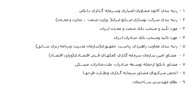 دهه سوم فعاليت تكنيكان پارس - تهيه گزارشات توجيهي - نظارت براجراي پروژه-تامين ماشين آلات وتاسيسات-عارضه يابي و اصلاح ساختار صنايع و اجراي سيستم هاي مديريت و كيفيت و نصب و راه اندازي ، تعميرات و نگهداري