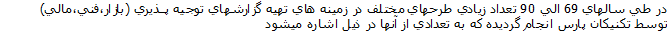 دهه سوم فعاليت تكنيكان پارس - تهيه گزارشات توجيهي - نظارت براجراي پروژه-تامين ماشين آلات وتاسيسات-عارضه يابي و اصلاح ساختار صنايع و اجراي سيستم هاي مديريت و كيفيت و نصب و راه اندازي ، تعميرات و نگهداري