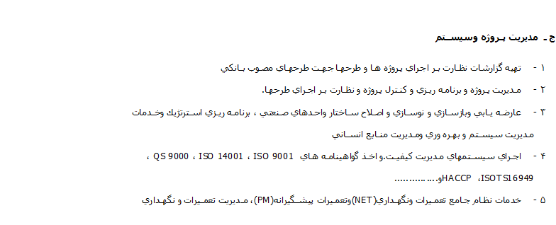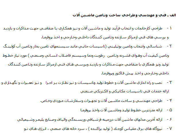 دهه سوم فعاليت تكنيكان پارس - تهيه گزارشات توجيهي - نظارت براجراي پروژه-تامين ماشين آلات وتاسيسات-عارضه يابي و اصلاح ساختار صنايع و اجراي سيستم هاي مديريت و كيفيت و نصب و راه اندازي ، تعميرات و نگهداري